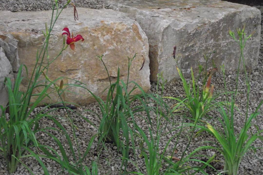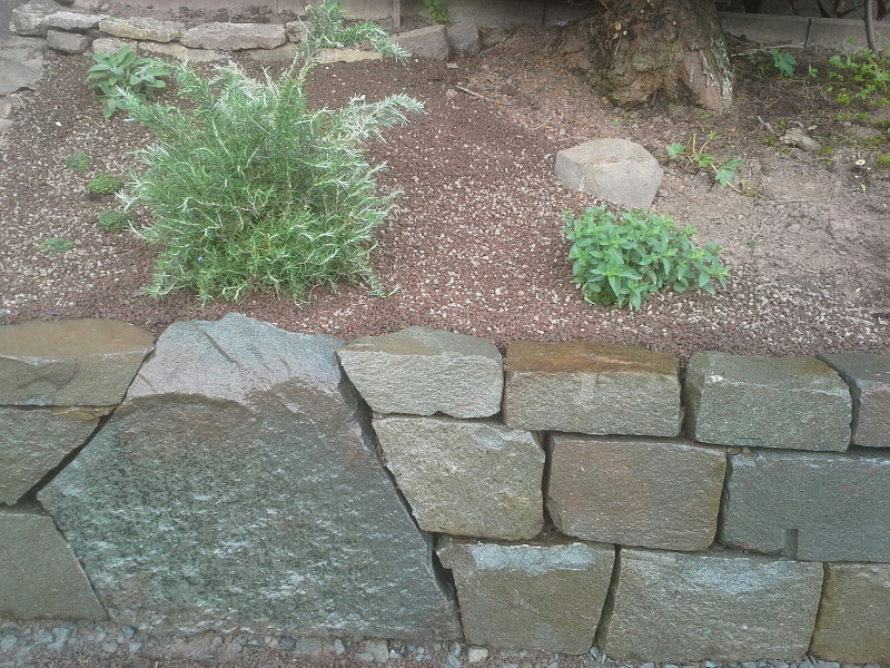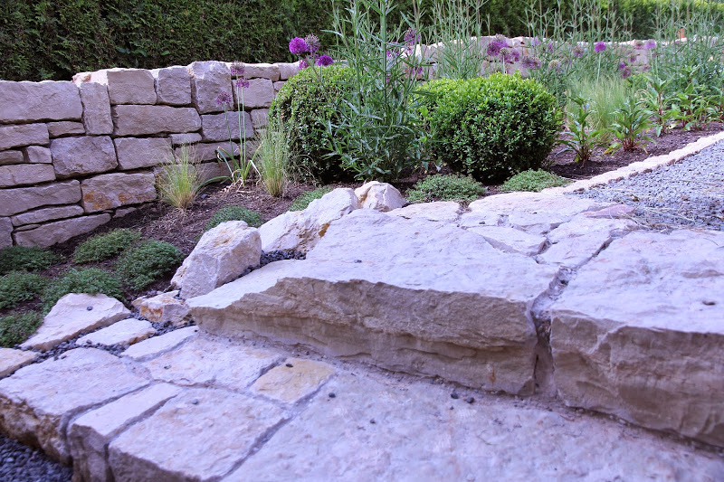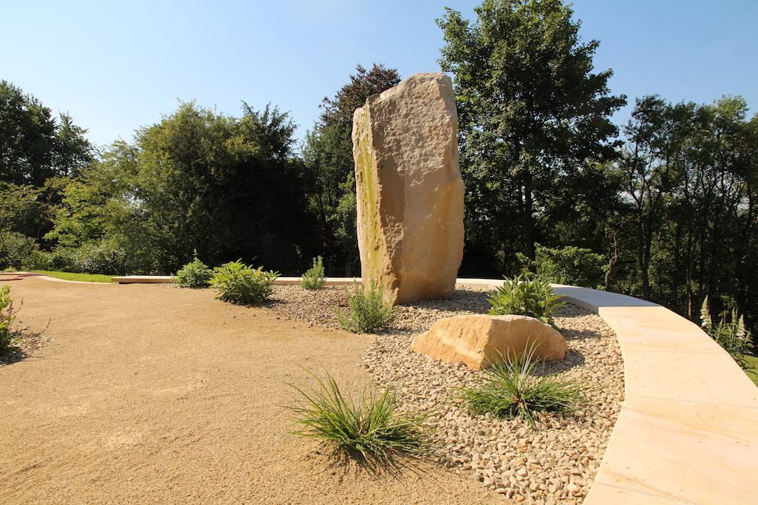 Die Steine erhalten mit der Zeit ihre eigene Patina und erzeugen im grünen Umfeld ein harmonisches Bild.