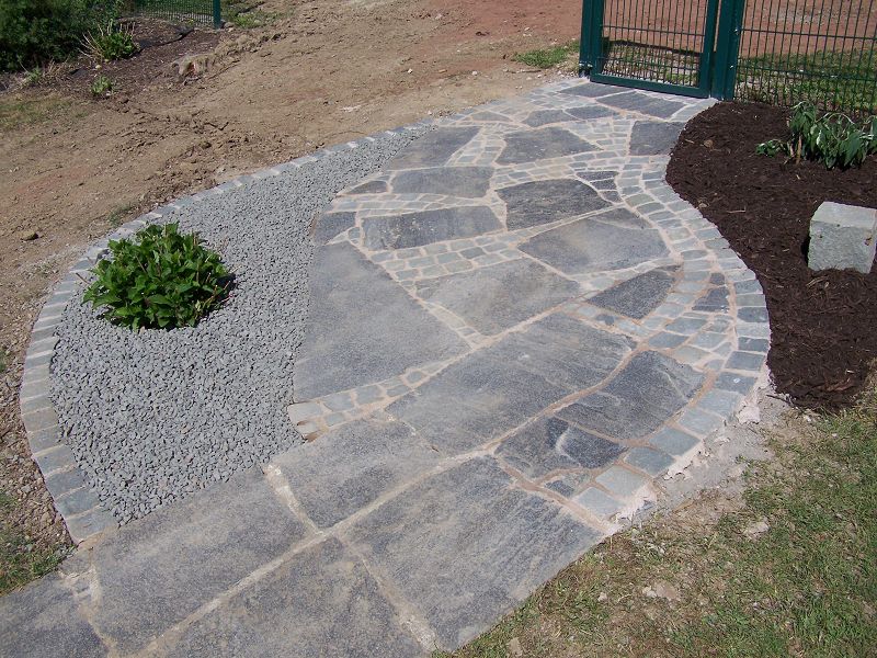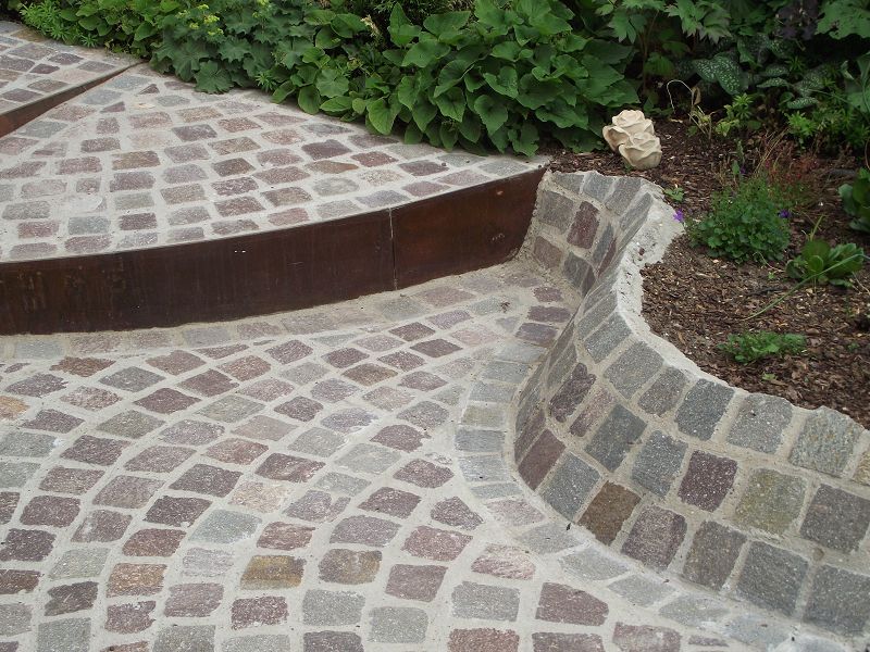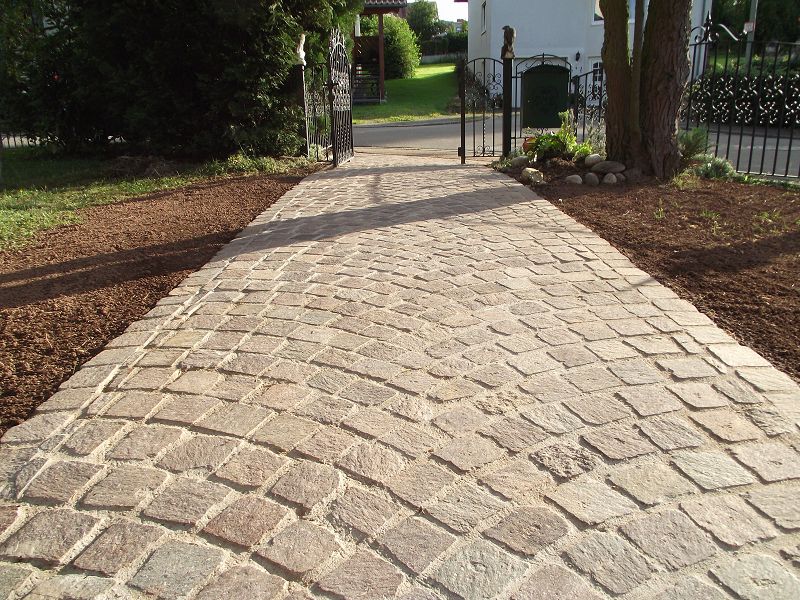 Pflasterflächen aus Naturstein verschönern den Wohnraum „Garten“ über viele Jahre. Mit Hilfe der verschiedenen Natursteingrößen (Mosaik-, Klein- und Großpflaster) kann man ansprechende und charakteristische Erscheinungsformen für Flächen und Wege erstellen.