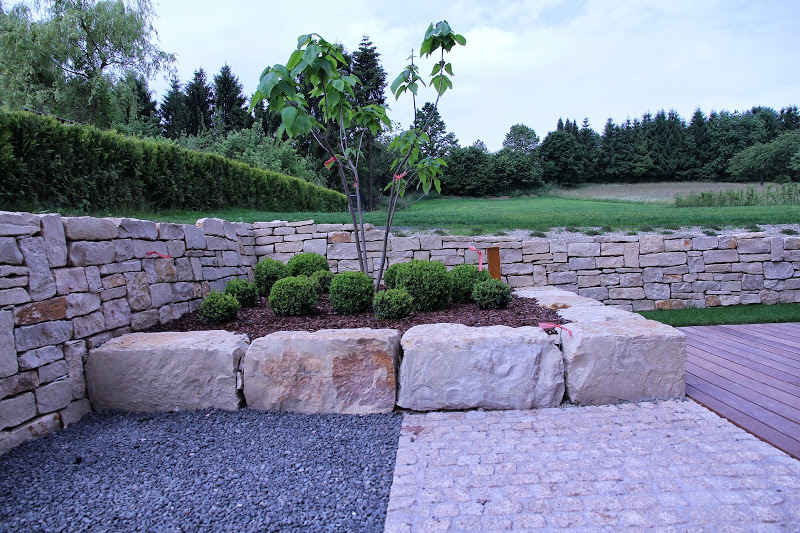 Über viele Jahrzehnte hat sich der Trockenmauerbau mit Naturstein in den Bergregionen und Weinbaugebieten bewährt. Diese optisch ansprechende Art der Geländeterrassierung bieten wir Ihnen als ökologische Alternative zu vermörtelten Mauern an. Ohne Bindemittel bleibt das Bauwerk flexibel gegenüber Bodensetzungen, weshalb es nicht starr mit Beton gegründet werden muss. Überdies sind Trockenmauern grundsätzlich wasserdurchlässig, weshalb sie die Fähigkeit besitzen, sich selbst zu entwässern.